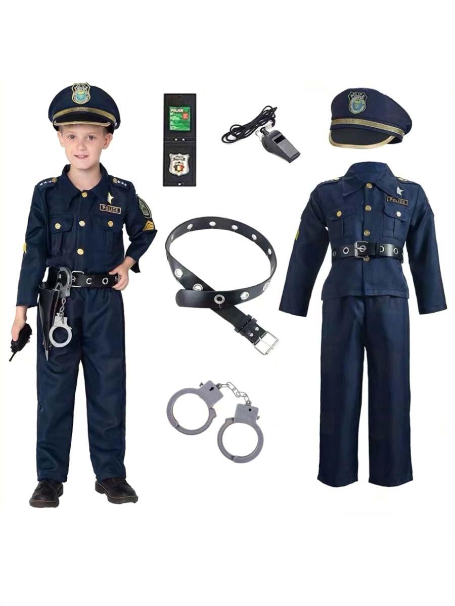 Get ready to keep the neighbourhood safe in style with our Policeman Costume with Accessories! This authentic-looking kit turns any child into a confident little officer — ideal for school plays, Halloween, birthday parties or imaginative everyday play. The set features a smart navy jacket and trousers, peaked cap, sturdy belt with holster, metal-look handcuffs, badge and whistle — all the essentials for a convincing uniform. Thoughtful details like brass-style buttons and embroidered patches add realism while allowing comfortable movement. Durable, easy to wear, and endlessly fun — let your junior officer patrol the playground and lead the next make-believe mission!.
